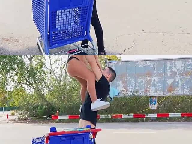 Cute blonde hottie girl public street sex threesome with 2 guys with big dicks