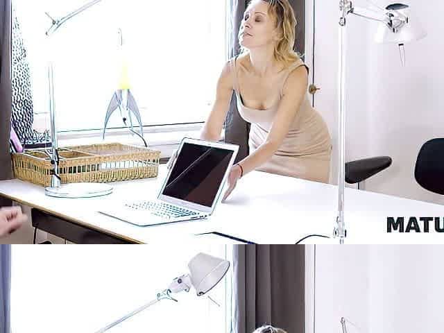 Hot blonde mature Maria gives a young man a lesson in wild sex action