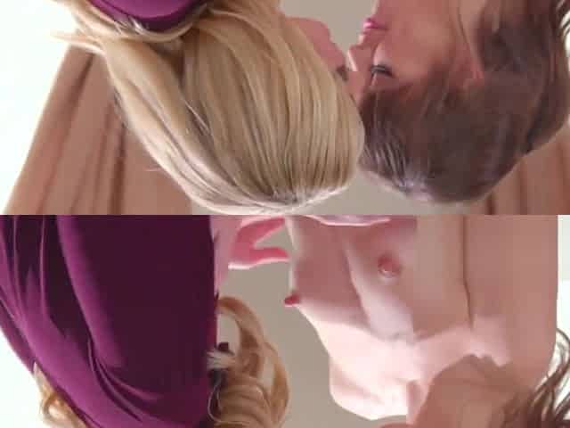 Blonde Lesbian teen and mom kiss sensually