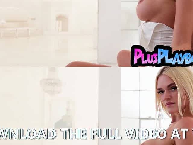 Hawt breasty blond hottie naked astounding body after sexy striptease for the Playboy