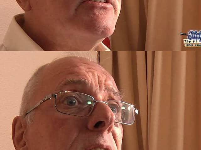 Busty blond hottie teases kinky guys shaving her kitty