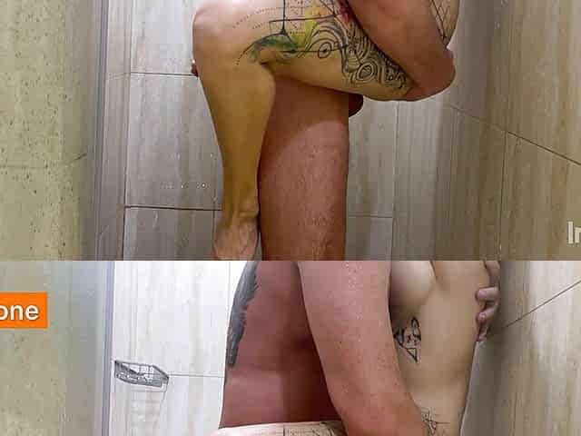 Passionate sex in the shower with a hot blonde and cum on her face
