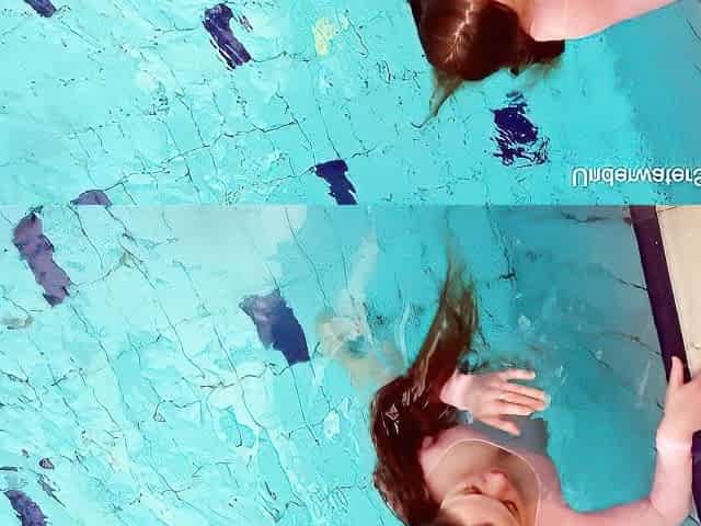 Hairy teen babe Nina Mohnatka swims in the pool