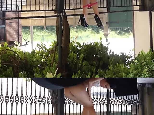 Barely clothed MILF CJ Sparxx reveals her massive boobs at her balcony