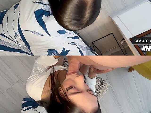 Brunette Sucks Young Huge Cock Until Thick Cum Flows Out