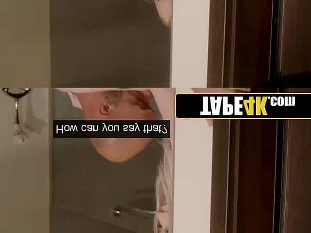 Seductive blonde lady seduces hotel dude while her hubby is away