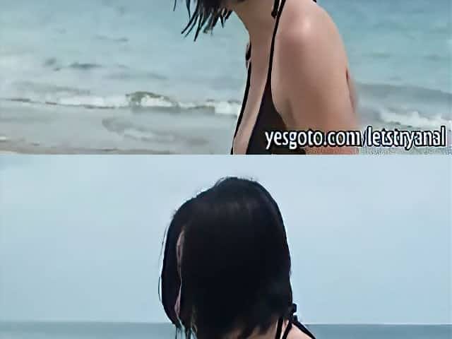 Sexy bikini girlfriend first time anal fucking on beach hotel