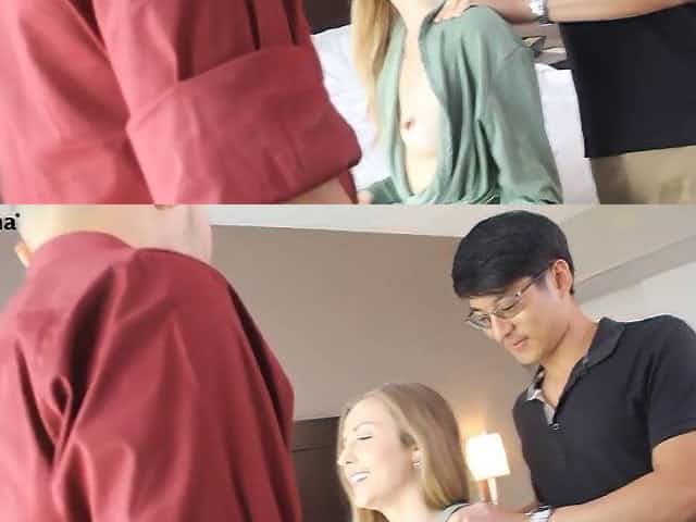 Blonde Slut Karla Kush Trained By Two Asian Maintenance Men