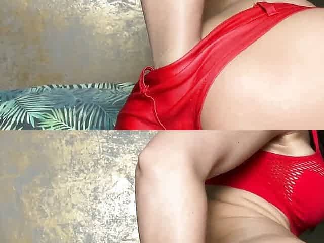 Hotkinkyjo in sexy red open but suit self anal fisting, prolapse & huge dildo anal from mrhankey