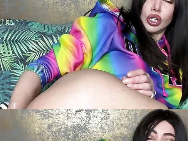 Hotkinkyjo in sexy black dress fuck big purple bottle & anal prolapse