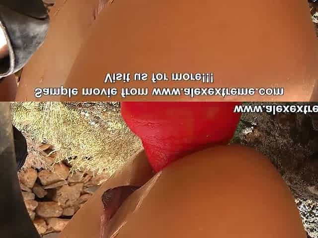 Hotkinkyjo fuck her ass with red dragon dildo at the beach and anal prolapse