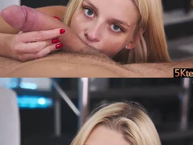 Close up with blonde hottie blowing a large dick