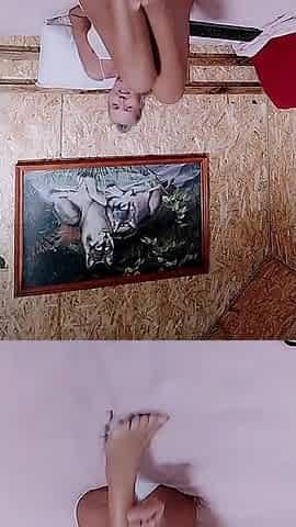 Violet poses half-naked in front of a deviant stranger