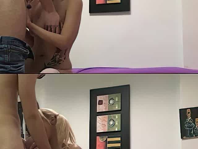 Skinny blonde knows how to suck it good