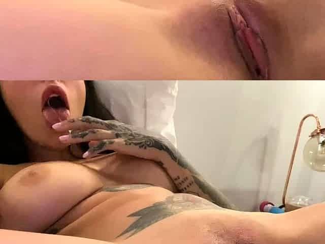Wet tattooed raven babe Sahron with big boobs masturbates