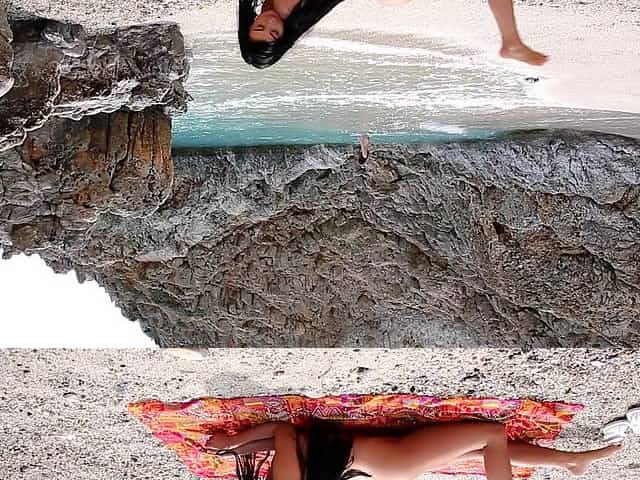 Busty babe Alicia is posing on the beach