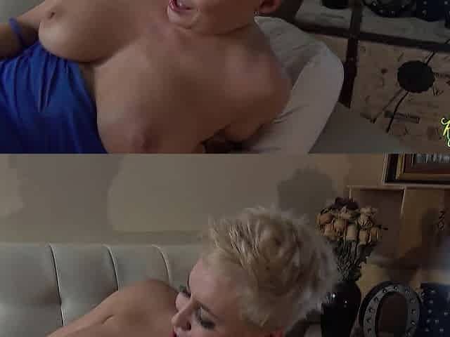 Mature blondie babe Livia fucks with a huge black dildo