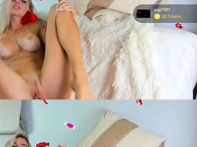 Blonde Tattooed Russian Babe Orgasms with Her Toy on Webcam