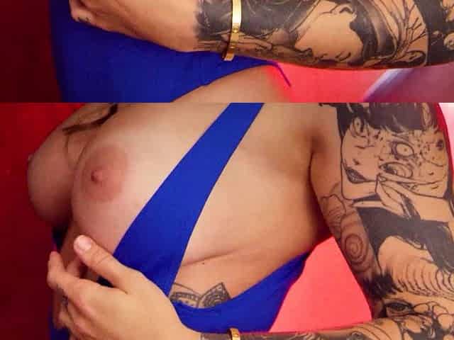 Wet tattooed raven babe Sahron with big boobs masturbates