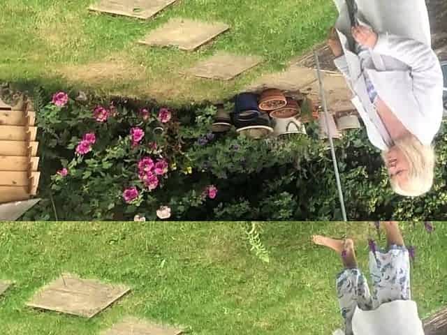 helpful neighbour helps grandma get moist