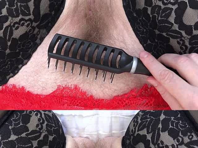 Mature Hairy Pussy Cums From a Comb Close-up. Amateur Fetish with a Plump Pubic Mound and Bush.