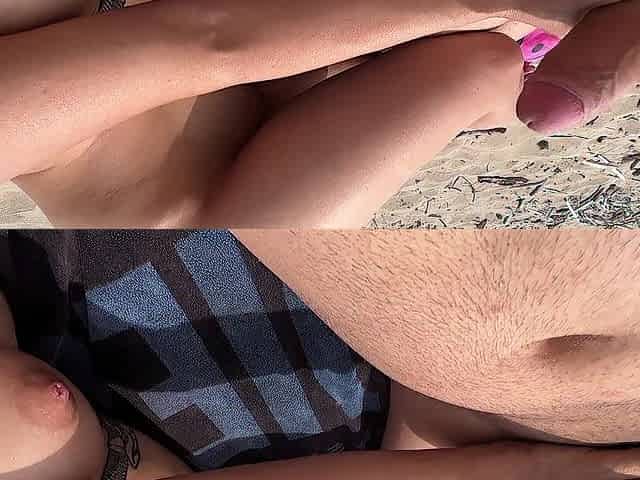 Nudist pair fingering on public beach