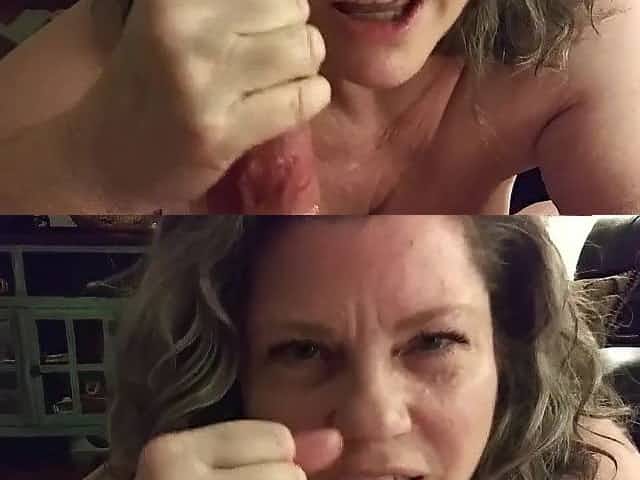 Lusty amateur cougar blows her endowed husband on a camera