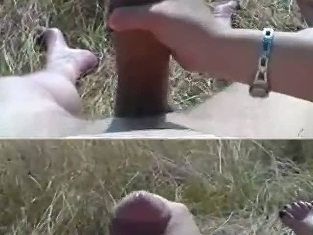 Wife's handjob milks monster uncut cock for precum before big load
