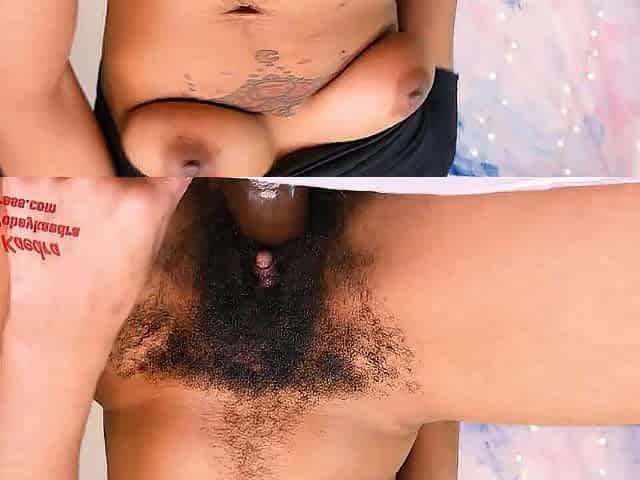 Dark skinned babe Kai masturbates with fingers and big dildo till she cums