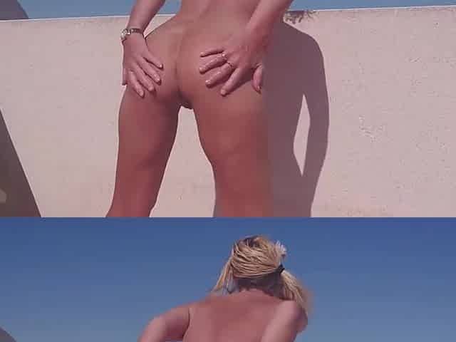 Outdoors naked in the sun, bending over, i fuck my huge 15 inch dildo up inside my pussy