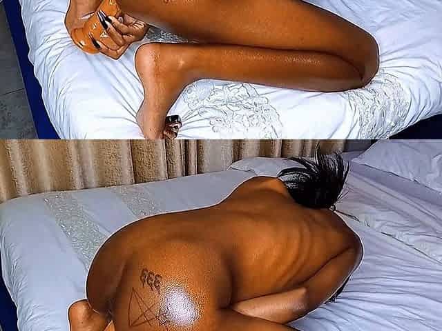 Black Slut Rowena Fucks Large Dildo, Buttplug in Ass