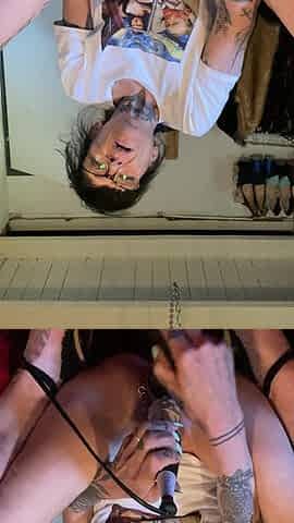 A brunette hair screws her twat with a sex toy in front of a mirror. Homemade.