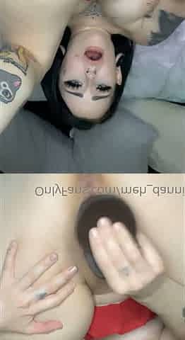 goth bitch fucks her big dildo till she cums