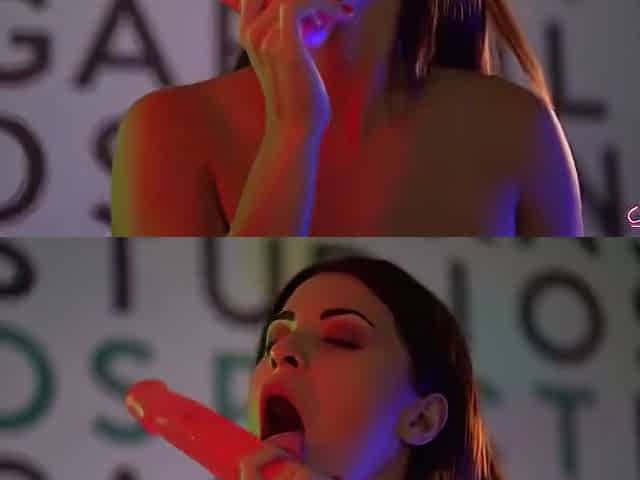 Angelina Crow sucking and fucking her huge dildo
