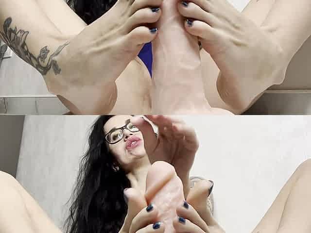 Blue Body on and Blue Toenails Polish, Self Toe Sucking, Pussy Close Ups, Huge Labia, Footjobs