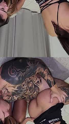 Tattooed large-breasted woman bounces her boobs and asks for ramrod