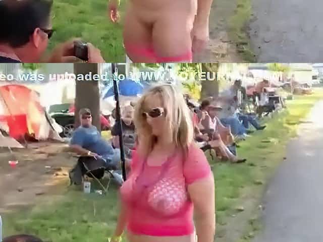 Big boobs biker babe flashes at the park