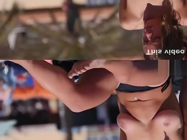 Huge natural tits on the topless beach