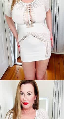 "White Sheer MiniDress Posing Tease by Mature MILF Elaina St James - known as The Quintessential Older Woman"