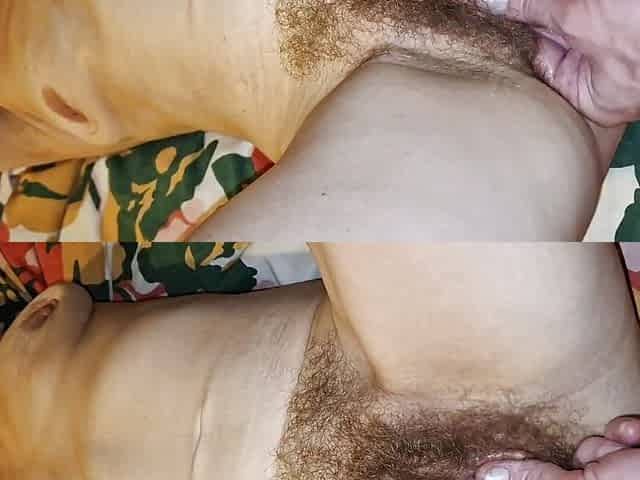 "He massages her hairy loose pussy "