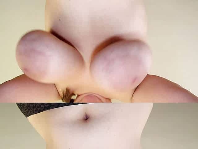 Big bouncing natural boobs from below
