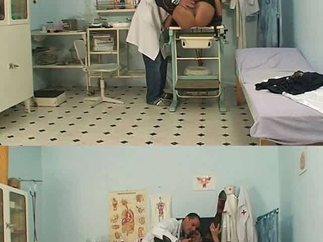 The girl goes to the gynecologist who fucks her pussy and cums.