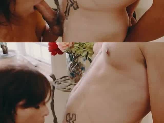 Milf saggy tits blows 2 guys