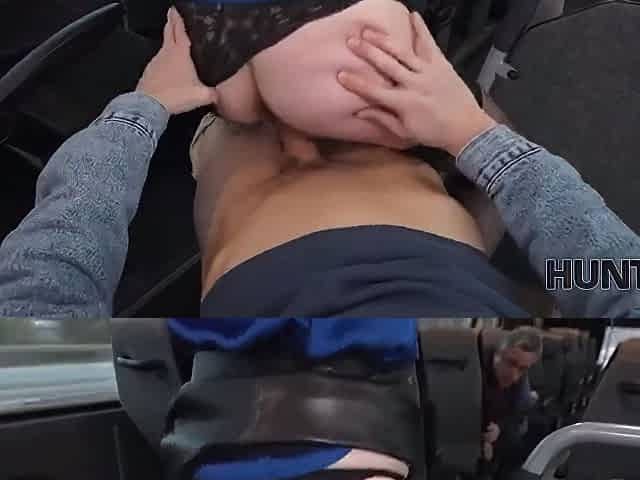 Breasty Brunette hair Goes Wild on the Bus for a Stack of Money