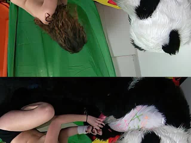 began to play with a large dong toy panda