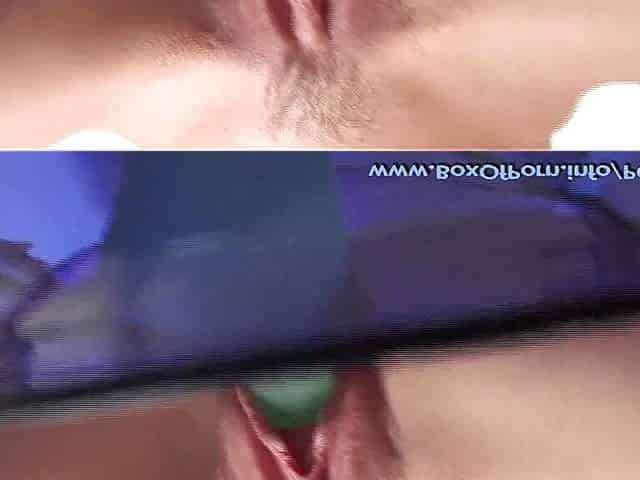 Babe slides huge toy in her twat