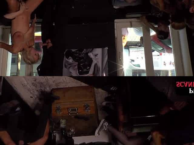 Public humiliated babe licks and sucks in group sex