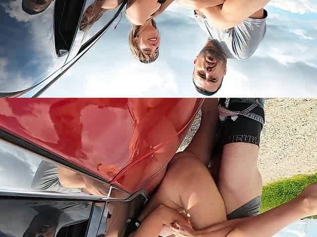 Il baisse ma jupe et m'encule contre le capot de la voiture