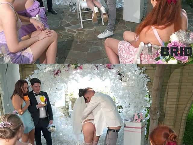 Bride Spreads Her Legs In Front Of The Wedding Manager For Some Help