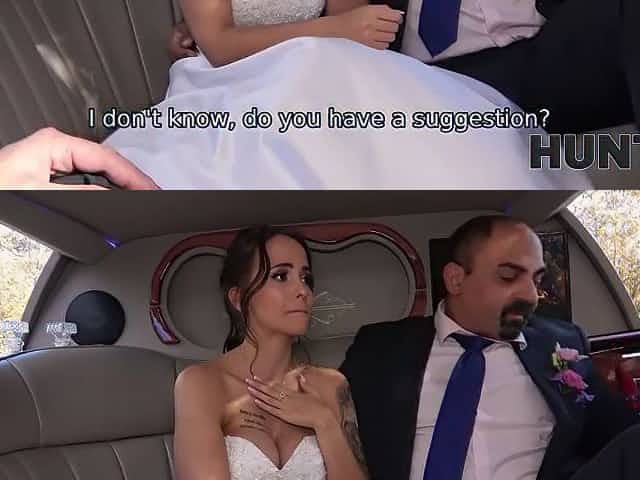 HUNT4K. Horny girl in a wedding dress has fun with her future husband